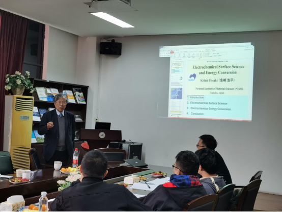 首先,杨植副院长对鱼崎浩平教授的到来表示热烈欢迎,并从实验室条件、专业建设工作、学科实力等方面进行了简单介绍。随后,鱼崎浩平教授以“Electrochemical Surface Science and Energy Conversion”为题进行了长达一小时的学术报告,对界面电化学、电催化、储能等方面的发展现状及研究进展展开了深入剖析,就同学们和专家提出的问题进行了细心讲解,表达了对申请去北海道大学攻读硕士和博士学位学子的欢迎,并在会后与各位师生亲切合影。本次报告内容丰富,创新性强,51吃瓜师生受益良多。
