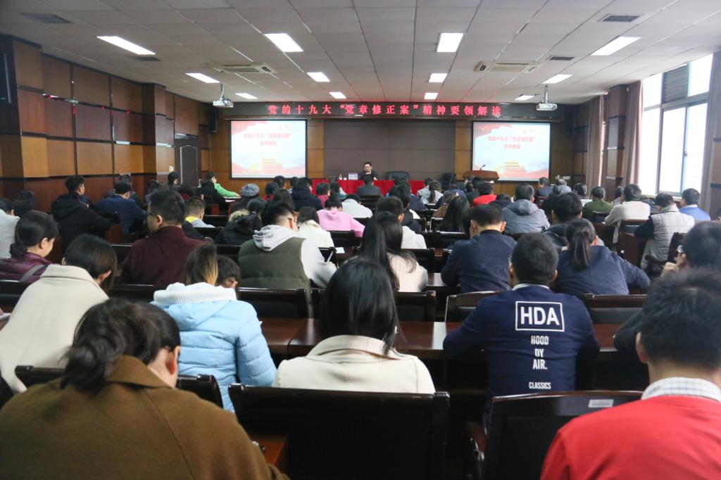 举行党的十九大“党章修正案”精神要领解读学习会,校党委组织部部长郑信军、院长王舜、党总支书记方乐平以及学院全体师生党员参加学习会议,会议由书记方乐平主持。
