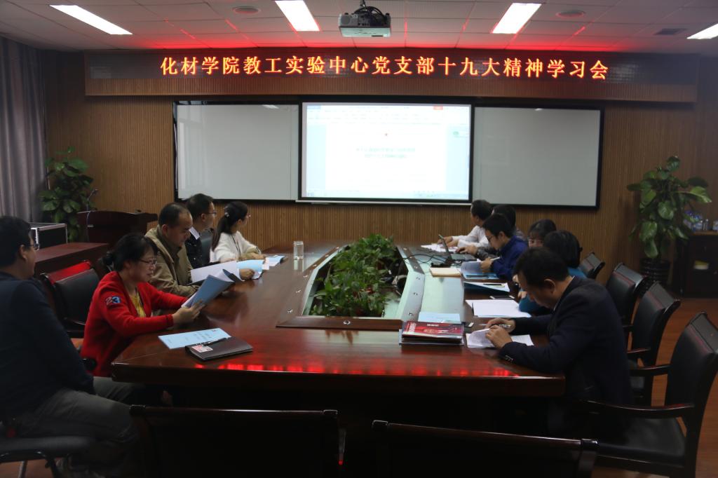学习开始前,在支部书记刘妙昌的带领下,全体党员重温入党誓词。在庄严的宣誓以后,刘妙昌同志首先组织全体支部党员学习了《十九大报告》和党的十九大通过的《中国共产党章程(修正案)》,学习过程中,支部书记刘妙昌深入讲解了党章修订的背景及特点 ,带领大家一起逐字、逐句、逐行对照学习了《中国共产党章程》新修订部分。与会党员积极讨论十九大报告以及新修订党章的内容,依次发表学习后的感悟。“不忘初心,牢记使命”是被提及最多的关键词,几位在学生工作和教学岗位一线的老师们都表示,作为一名共产党员,在平时的工作中不但要发挥党员的带头作用,做好自己的本职工作,同时也要不断努力保持自身的先进性,进一步抓紧学习,把十九大精神切切实实与自己的工作、学习、生活相结合,牢记“为中国人民谋幸福,为中华民族谋复兴”的初心和使命。