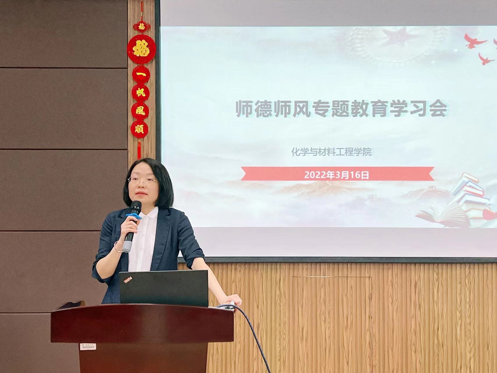 教师职业行为规范及师德失范行为处理办法(试行)》的文件精神,刘吟书记指出作为高校教师,必须警钟常鸣,坚守教育人的初心,不断提升教书育人能力,争做新时代的“四有”好教师。