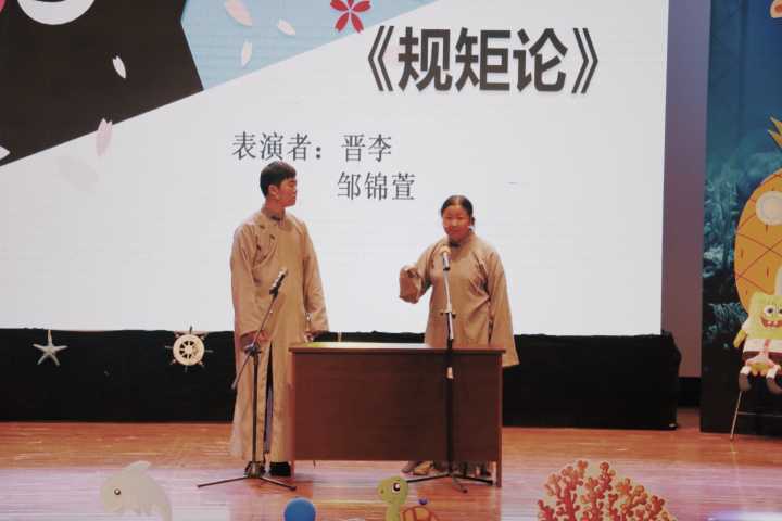 第二篇章“二氧化‘萌’”。17化类3班的晋李同学与邹锦萱同学一起为大家带来了相声——《规矩论》,妙语连珠让现场的观众乐开怀。51吃瓜研究生带来一首《从11路到11B的日子》,表达了研究生生活的切实感受。17化本1班的六位同学带来的舞蹈《bang bang bang》,让现场观众热血沸腾。
