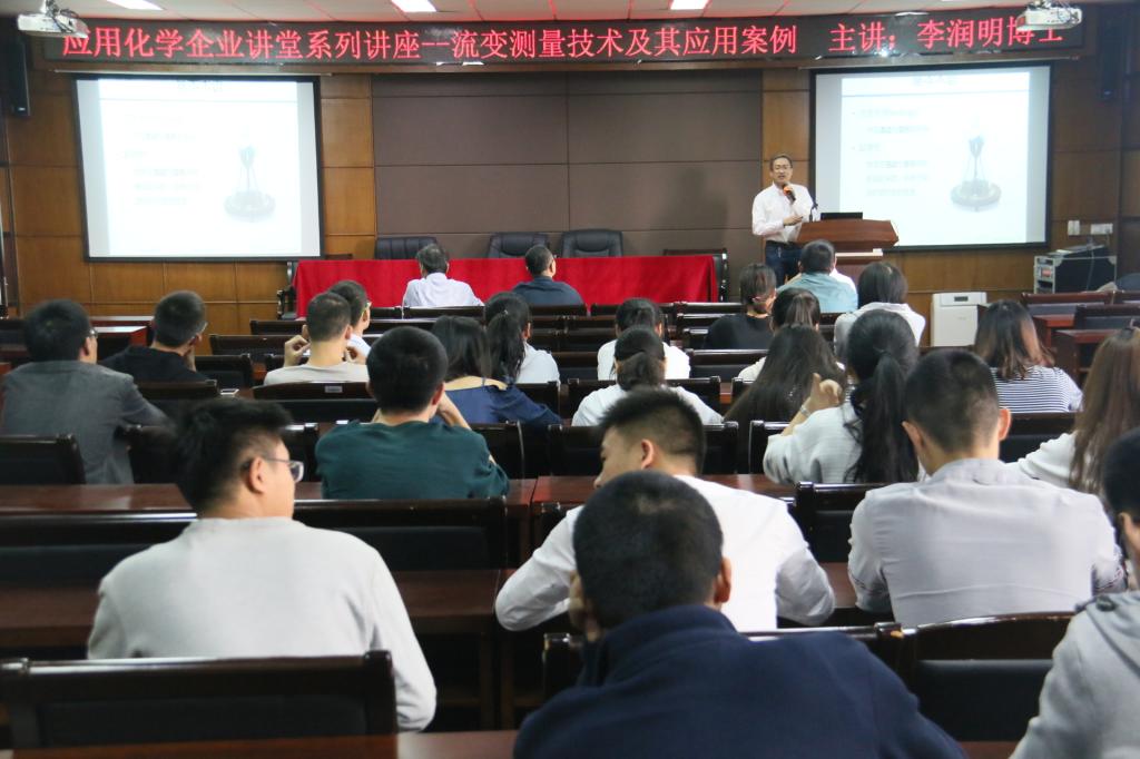 2017年10月25日下午14:00,河南大学副教授,美国TA仪器流变应用专家李润明博士受邀莅临51吃瓜,作了关于“流变测量技术及其在复杂流体中的应用案例”的学术报告,学院相关研究方向的师生听取了报告。
