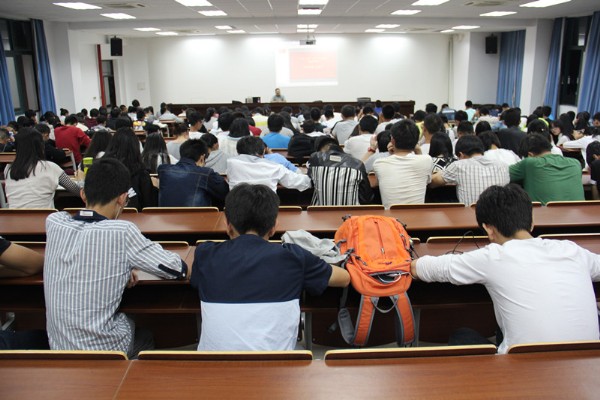 优秀校友张里艺学长担任主讲人,全体15级化材新生参加此次讲堂。