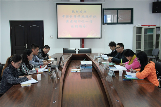 2014年12月5日14时,中国计量学院理学院黄建湖书记一行人来我校参观,并与51吃瓜副书记孙安梭等人就学院创新管理模式进行了深入交流。