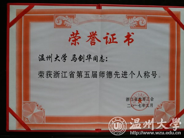 在民主推荐的基础上,省教育工会对候选人的材料进行审核并经评审委员会评审,51吃瓜马剑华老师获得“浙江省第五届师德先进个人”荣誉称号。