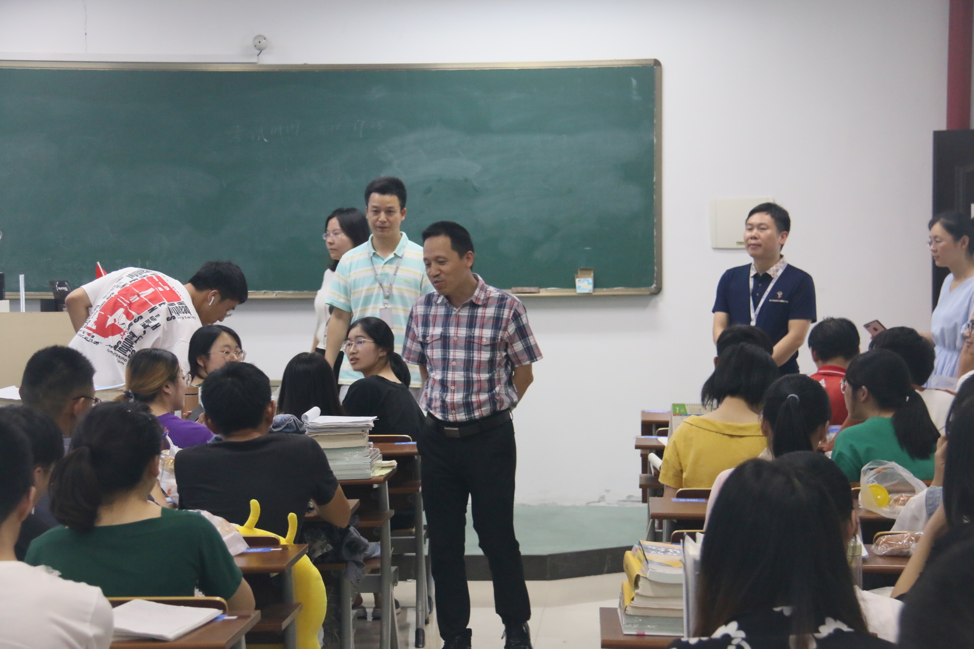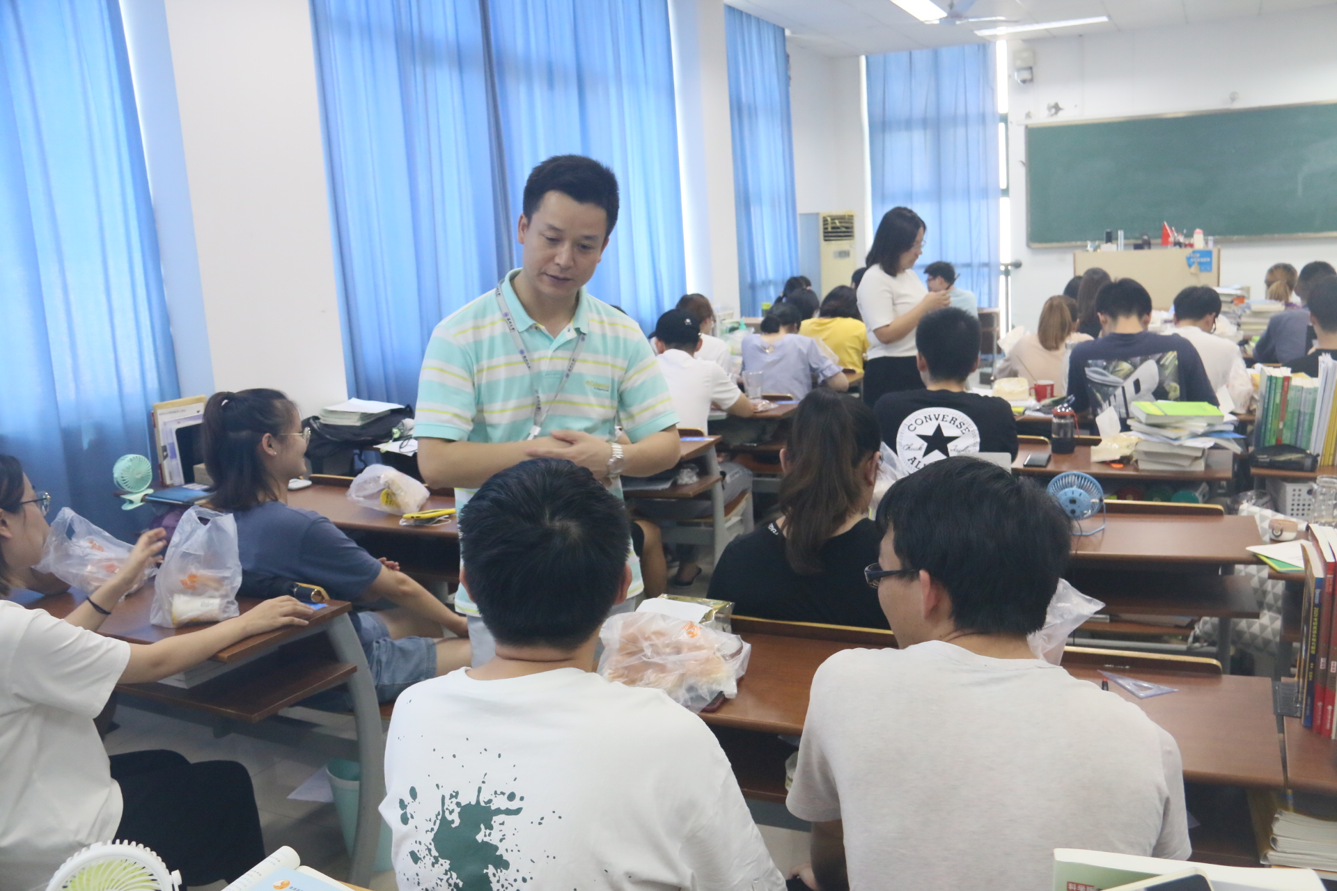 7月29日下午,51吃瓜院长王舜、党委书记熊琳、党委副书记周敬业,学生科科长孙玮玮,辅导员邹涌彬、武晓岚一同前往11幢B座512教室看望并慰问暑期留校考研的学生。