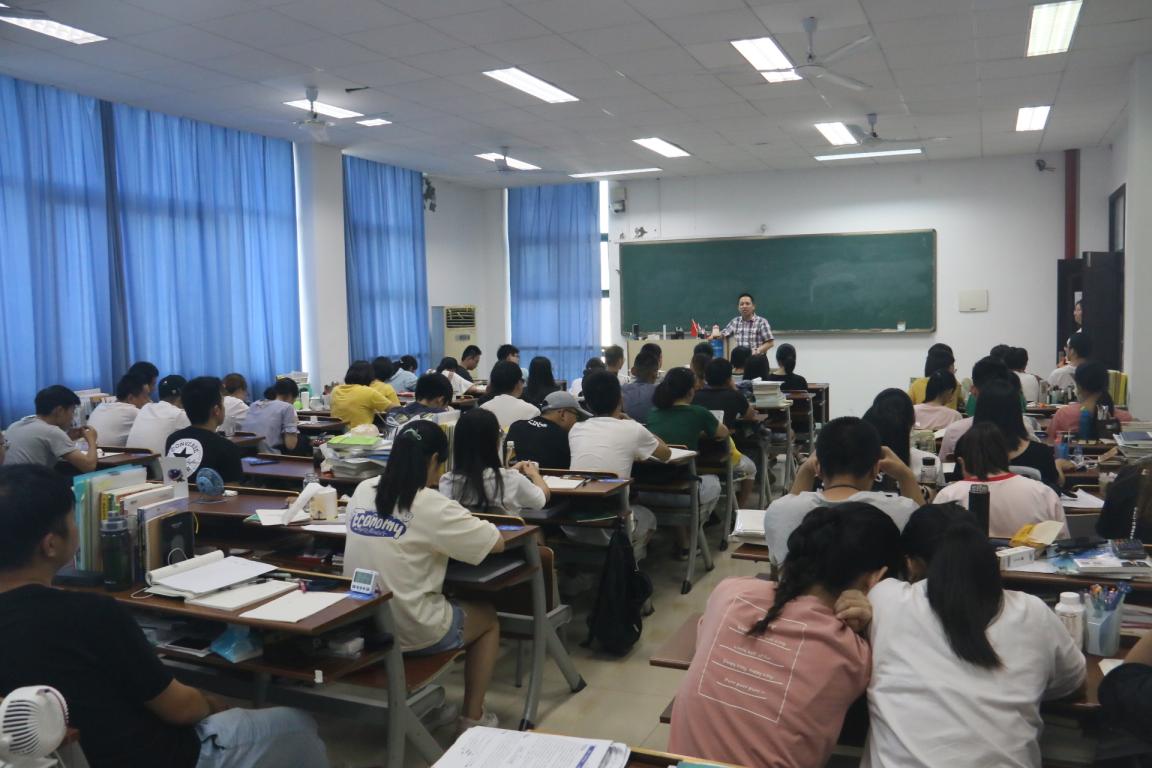 王院长对同学们暑期坚持备考表示肯定和鼓励,并提醒同学们注意劳逸结合,做到高效学习。王院长结合自己的学习经历,对同学们提出三点要求:一是坚定信念,持之以恒;二是树立考研目标,并有所选择;三是及时寻求帮助,注重知识的积累,并积极与老师沟通交流。王院长指出,考研过程考验的是耐力与心性的坚忍与否,在考研剩下的几个月里同学们应当互帮互助,互相鼓励,鼓足干劲收获更多。