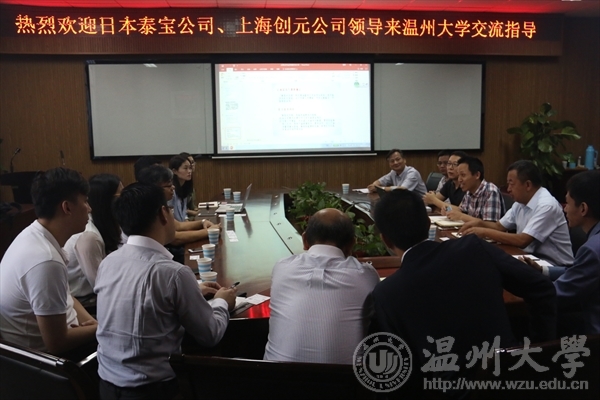 2017年10月12日上午,日本泰宝公司董事长铃木公仁先生、营业部部长柳田洋先生、龙明建先生,上海创元公司副总经理曾四立、研发中心总监沈弘、人力资源经理吴陈芳、日本业务发展总监张志等一行11人来院交流、洽谈合作。会议由院长助理王兆伦主持,院长王舜、书记方乐平、副院长张兴国及相关教师出席了本次会议。