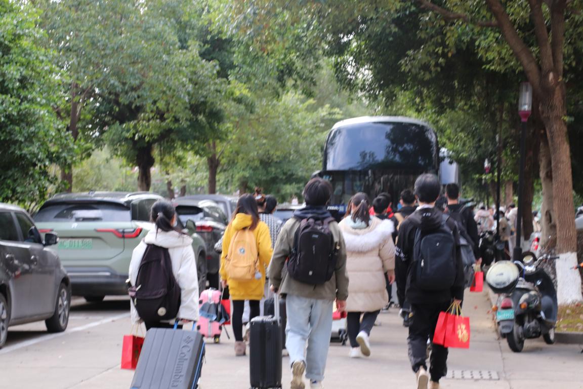 会后,学院安排专车将同学们送往考场,方便同学们熟悉考场,尽早进入考试状态。