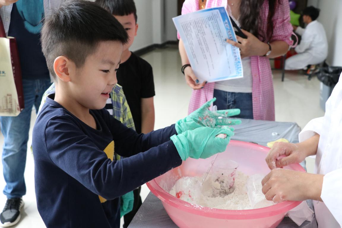 “从实验内容地创作,到制作实验开放宣传资料以及实验物资的准备与活动现场的布置等由五个实验开放团队一起分工协作,历时半个多月之久,比较顺利地完成全套实验开放活动流程的安排。”团队成员吴歆瑜介绍说。据了解,此次活动分上午和下午场次,在两个小时内报名140余人,得到校内教工的大力支持,活动参加人数较去年大幅提升。实验活动采取化学实验派对方式进行,孩子们一一体验,仿佛进入一个“化学实验超市”。“这是51吃瓜