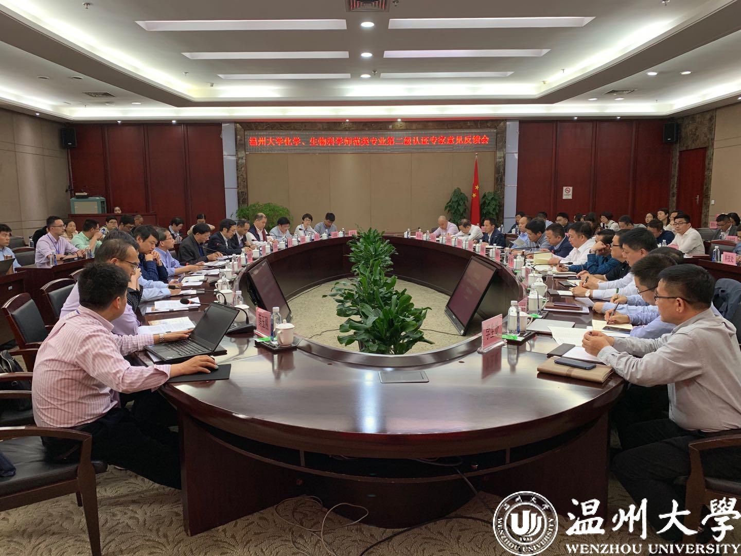 学院院长王舜向与会专家介绍了化学专业发展情况、优势与亮点、发展思路及认证自评准备及整改工作。王舜指出,学院化学专业依托一流学科提升专业发展,汇聚了一大批一流人才,科研不断促进教学建设,建立了“四年一贯制”的师范技能实践教学体系,成效显著,全面提高人才培养质量。同时聘请了一批高水平的校外兼职科研导师队伍指导师范生素养提升,学生课内课外活动,成果丰富,为浙江和温州地区培养一大批化学(科学)教育教师。化学专业坚持以学生为中心,产出为导向,持续改进理念,不断提升师范生专业素养,以满足浙江尤其是温州基础教育改革需求、用人单位满意度以及毕业生实际就业需求为重要评判指标,优化专业定位和人才培养目标,探索构建化学、科学分层分类培养的人才培养方案。对照师范生核心能力素养要求,反向设计课程体系与教学环节,进一步强化数字化双向互动教学资源建设,推进师资队伍和资源条件的合理配置。聚焦师范生核心能力素养要求,建立持续改进质量保障机制,对专业教学进行全方位、全过程的跟踪与评价,形成“评价-反馈-改进”闭环,进一步提升人才培养质量。