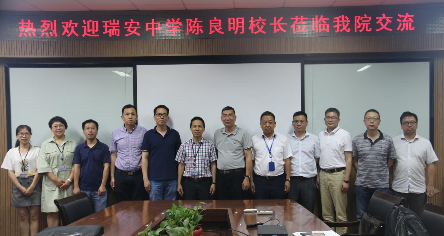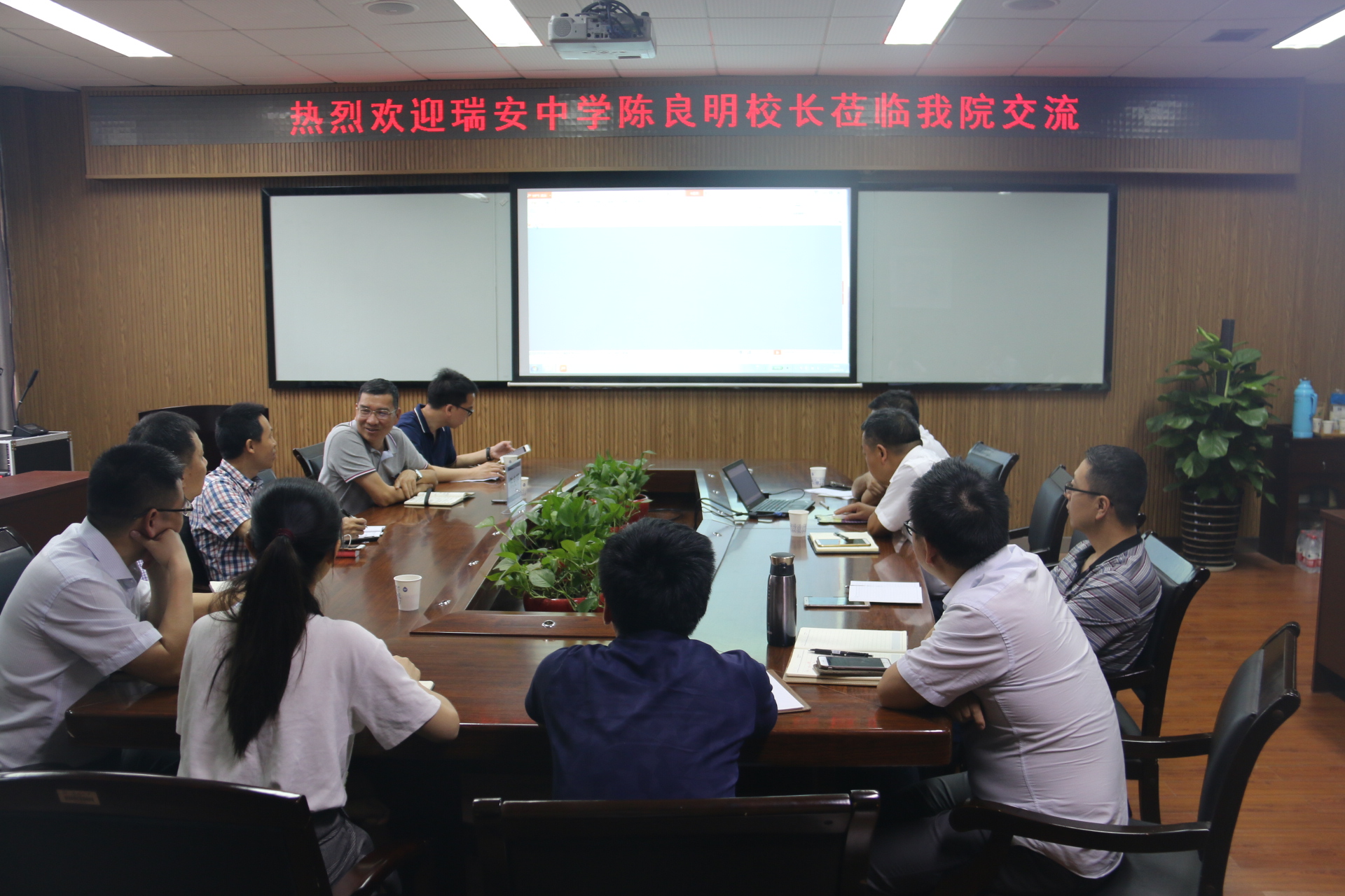 王舜院长代表学院对陈良明校长一行的到来表示欢迎,并介绍了51吃瓜在教育教学、师资建设、招生就业等方面的工作成效。同时高度肯定了瑞安中学近年来取得的成绩,希望双方今后进一步加强交流合作,在教育、教学和管理等方面进行深入研究、高度融合,围绕人才培养工作,全方位推进教育创新。
