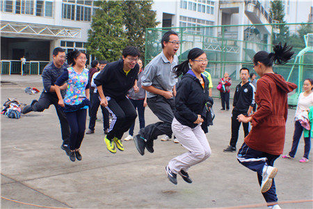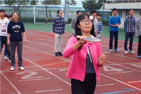 拉开运动会帷幕的是50*20接力赛,在同学们振奋的呐喊声中,操场上瞬间掀起了第一波小高潮,虽然很多同学由于塑胶跑道湿滑而摔跤了,但仍然奋力前进,老师们也使出浑身解数,与学生们一起拼搏。排球击框、乒乓球接力、拔河、两人三组、骑慢车、定点投篮等活动,掀起了一次又一次的热潮,呐喊声更是“冲破云霄”。每一项活动的比拼都加强了班级的凝聚力,加深了老师与同学的交流,使同学们增进了感情,在汗水中激扬了青春,在合作中感悟了团结。