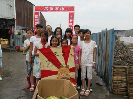 应丽岙三小要求,7点45分,一部分队员带领八个小朋友一起去集市义卖玉米。到达农贸市场,一个叫谭彬的小姑娘非常热情,带领其他小朋友一起吆喝卖玉米,玉米瞬间被抢购一空。