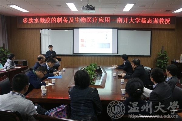 4月18日上午,南开大学生命科学学院杨志谋教授来51吃瓜作了题为《多肽水凝胶的制备及生物医疗应用》的学术报告。校长李校堃、51吃瓜