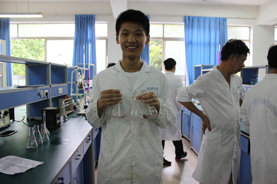 上午8点30分,队员们早早的来到学校分析测试中心,在项光其老师的指导下,大家有条不紊地做起了实验。第一步是对高锰酸钾标准溶液的测定。各位实验达人大显身手,熟练操作分析天平、移液管、酸式滴定管、电炉等仪器。从基准试剂称量,配置,到待测液润洗,装柱,滴定,过程一气呵成,毫不含糊。第二步是水样测定,取自明心湖畔的水样如今已乖乖躺在锥形瓶中,等待检验和测定。延续第一步的操作方法,移液,滴定,摇晃,队员们异常认真,努力将误差减至最小。项光其老师则全程指导,纠正同学们在操作过程中不规范的地方,帮助大家获得更加准确的数据。虽然实验时间紧凑,但不论是实验中还是实验后,大家都尽量相互谦让,共用试剂仪器,相互合作,实验结束后还主动打扫实验室卫生。在赢得指导老师赞赏的同时,更加彰显了化材实验达人们的严谨、细心和责任心。
