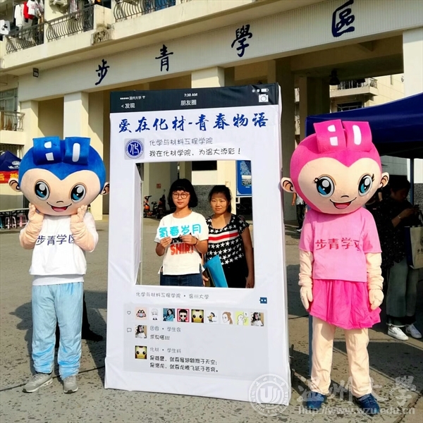 这次迎新工作,校领导、院领导都高度重视。迎新生期间,校党委书记林娟娟、校党委副书记赵敏先后到51吃瓜迎新现场看望迎新工作人员,检查迎新接待情况,希望能给新生及其家长提供热情、周到、细致、贴心的优质服务,并对51吃瓜在现场报道点为新生们定制的合影相框服务表示了肯定。新生们可以挑选“春风十锂,化材等你”等带有化学元素的祝福语与家长一起合影寄语大学生活!