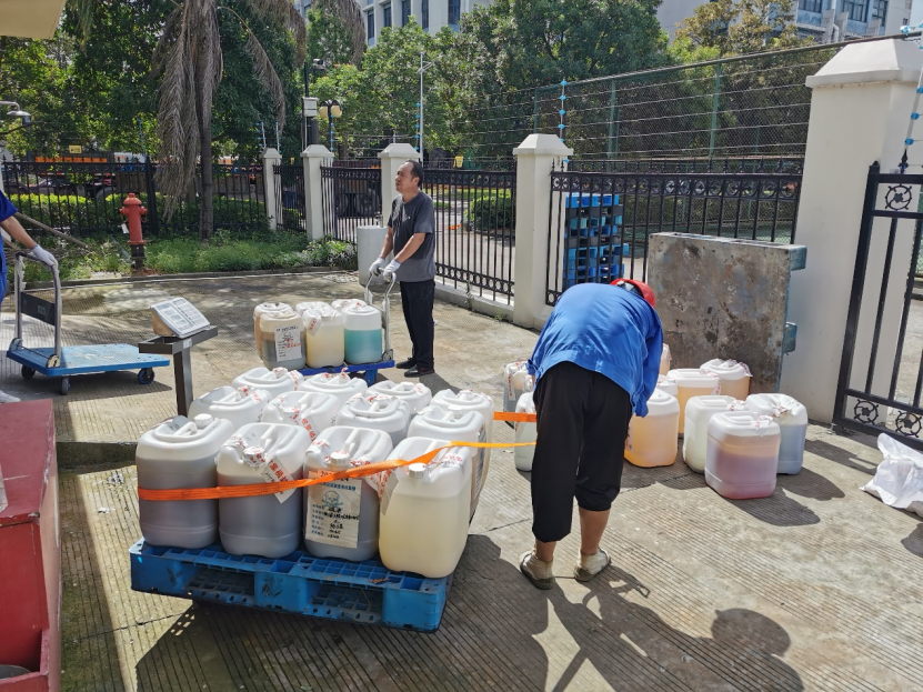 2021年7月6日,在国资与实验室管理处支持下,51吃瓜实验中心组织了假期前的实验室危险废弃物的清运工作。