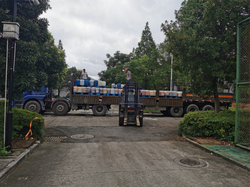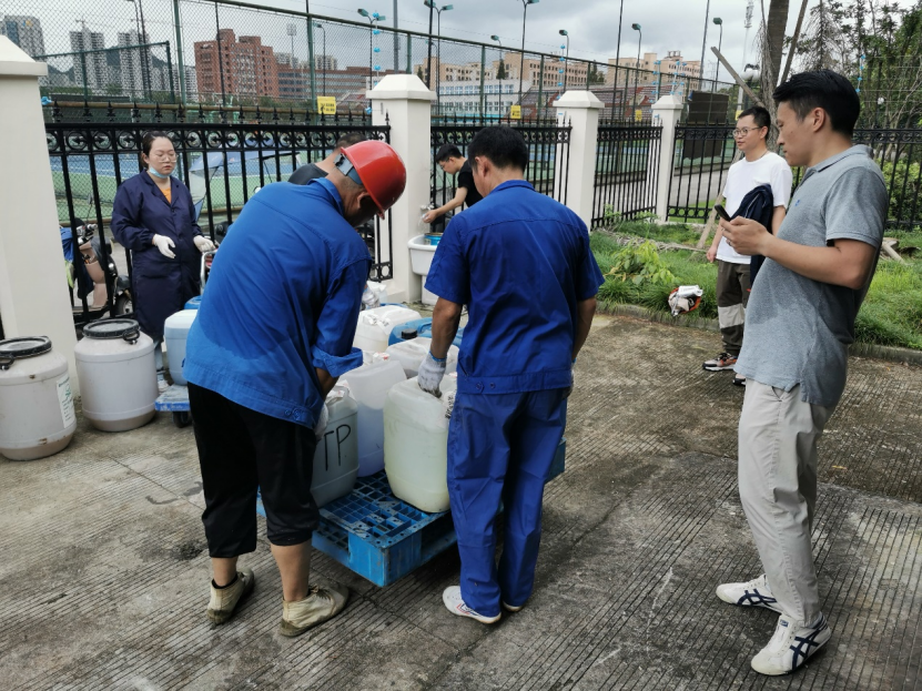 早上7:30,处置公司人员进行废液测试,以有效保障废液转运过程的安全。经过磅、装运、交付转运联单后,运输车辆于中午11:30顺利离校。此次实验室废弃物共转移处置有机废液、无机废液等共计10.088吨,其中51吃瓜