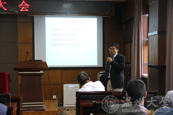 院长杨小平就本学期已开展的工作进行了说明,并针对教学工作、国际化教育、研究生招生工作及教务处工作抽查情况四方面指出了现阶段的工作要点。副院长陈久喜对本学期学院科学、学生学科竞赛取得的成绩进行了总结,就《2016年校级教改项目申报的通知》进行说明,对51吃瓜承办第九届浙江省大学生化学竞赛的工作进行了部署,并鼓励教职工积极开展科技创新活动。党总支副书记潘从义对学院“百名教授访百家”进行了总结,并对学院就业工作、学生团学工作、宣传工作开展重点进行了说明。