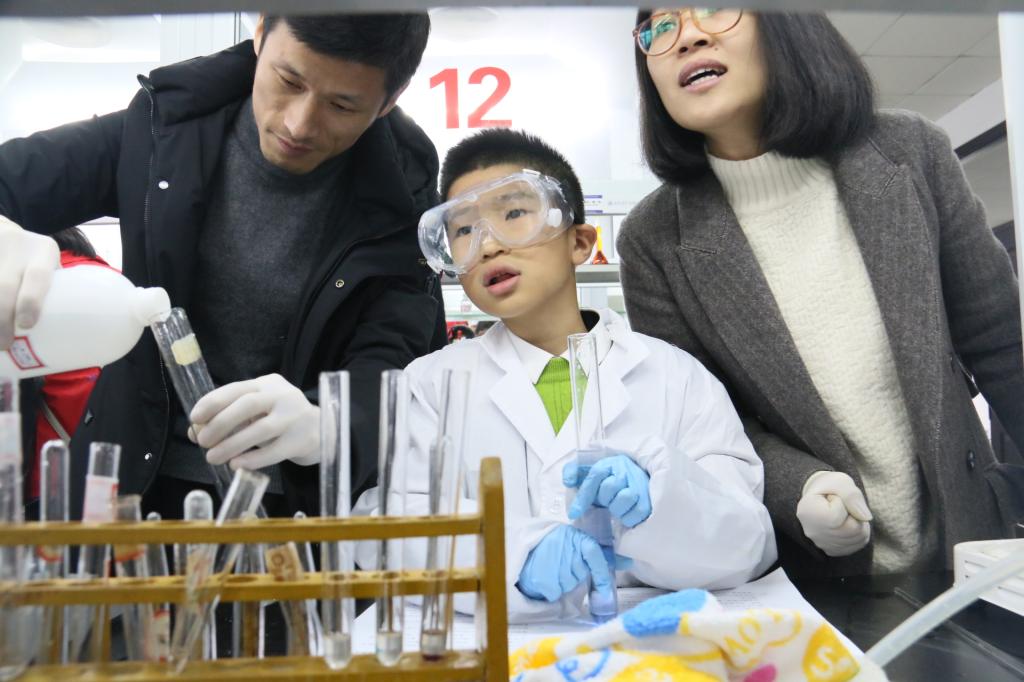 实验室活动前,教工党支部的张卫兵老师为前来参加活动的市民朋友们讲解实验内容、实验时的注意事项,以及处理突发情况的具体方法。然后,实验室志愿者们带领大家一起到实验室进行现场操作。实验室里,小朋友们看到了许多新鲜的事物,心情非常高兴。他们小心翼翼地取药品,用滴管给试管添加化学试剂,并认真地观察试管中反应的颜色变化,细心地对待每一个实验,展现出了小朋友们对实验的无限求知欲。