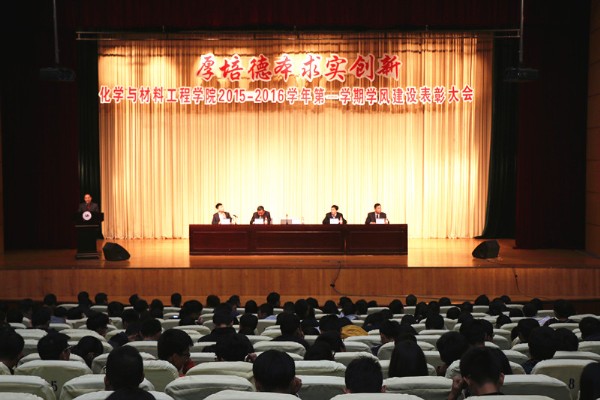 为进一步加强学院院风、班风、学风建设,引导和激励学生刻苦学习,筑志成才,12月23日下午,学院在大学生活动中心育英大礼堂隆重举行“厚培德本,求实创新”2015-2016学年第一学期学风建设表彰大会。学院全体师生参加会议。会议由党总支书记方乐平主持。