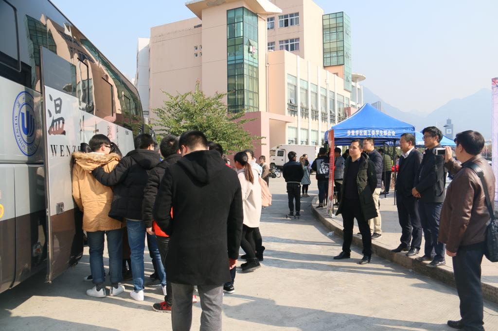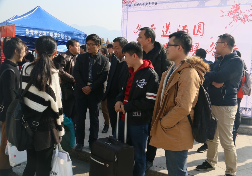 2018届毕业生考研学子齐聚步青学区华表,等待学院安排送考的校车。研究生部副部长兼14材料班班主任邹超、51吃瓜党总支书记方乐平、党总支副书记潘从义等领导、师生前来送2018届毕业生考研学子奔赴考点。