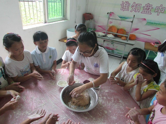 “温心”暑期科普夏令营实践队已经走过大半个阶段,但我们的队员毫不松懈,有条不紊地组织小学生上课。今天课程课程依然丰富多彩,尤其是下午的造饼大师。