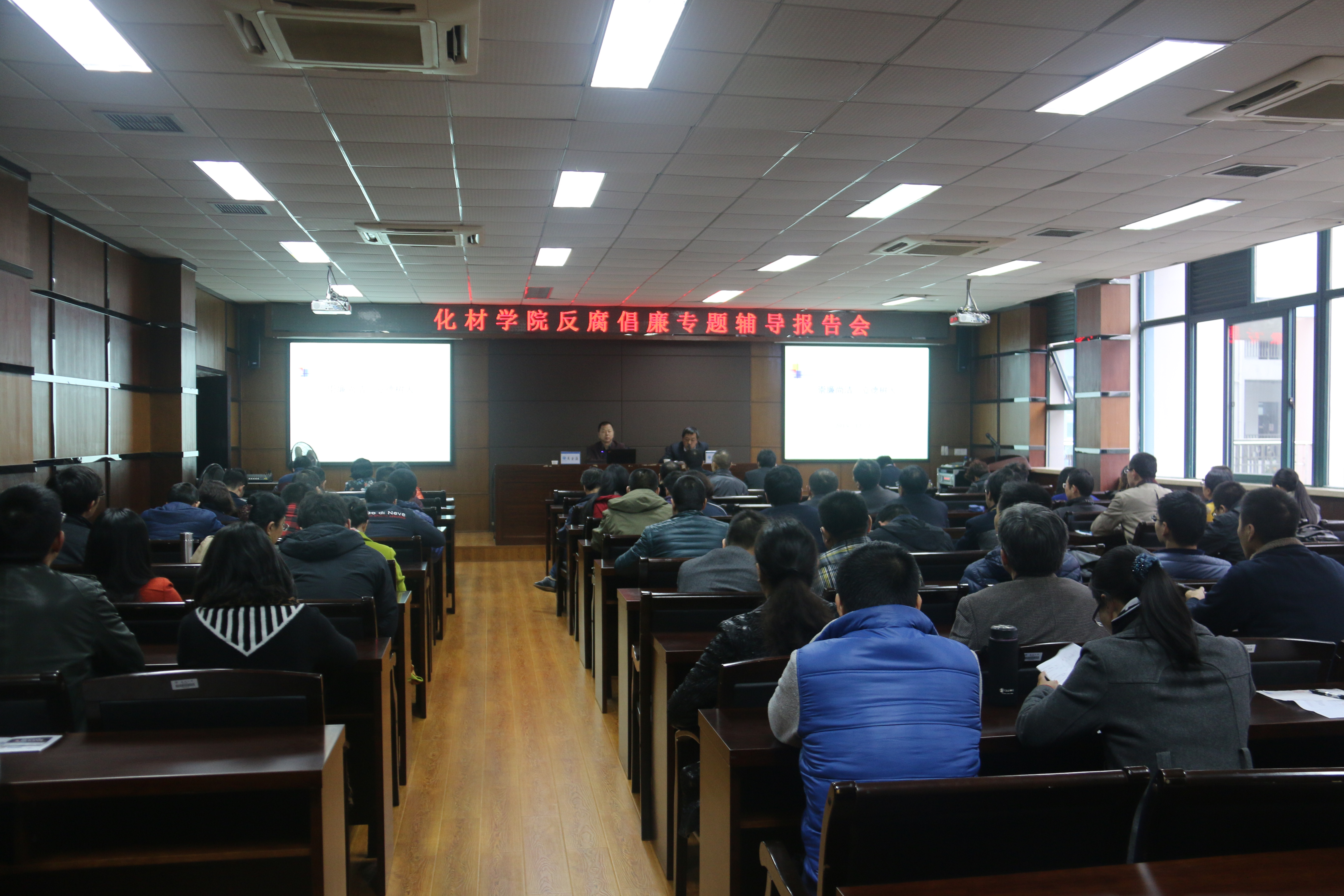 12月2日下午,学院在化材楼11B-208会议室召开反腐倡廉专题辅导报告会,学校纪委书记吴金法给全院教职工作了题为《崇廉尚洁 立德树人》的专题报告,学院党总支书记方乐平主持。