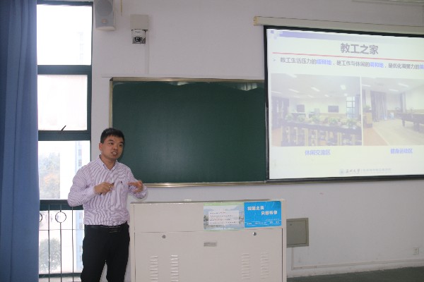 副院长陈久喜就实验室建设和科研相关工作进行了汇报,着重强调了学校针对近期省教育厅的实验室安全检查提出的整改要求。党总支副书记潘从义就学生工作、宣传工作和就业工作等进行了简要汇报,并强调了举办 “美丽化工”系列活动对于巩固专业思想和展现学院科研实力方面的重要作用。