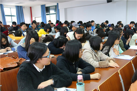 简要介绍自己后,向教授首先抛出了一个问题——“我们为什么要上大学?”同学们顿时沉默了,“大学是必要的,它不仅给学生提供了一个奋斗的平台,而且提供了很多站在学术巅峰,会启发并鼓励学生的大师们。”向卫东教授通过引用奥巴马,福特等脍炙人口的例子让同学们意识到“读书真正的目标是责任,不是兴趣”。人可以有各种各样的兴趣,但是只能当做使你身心愉悦的活动,而你,面对着父母老去,面对着国家的需要,只能去主动承担责任,养活自己,养活家人,为国家作出贡献。