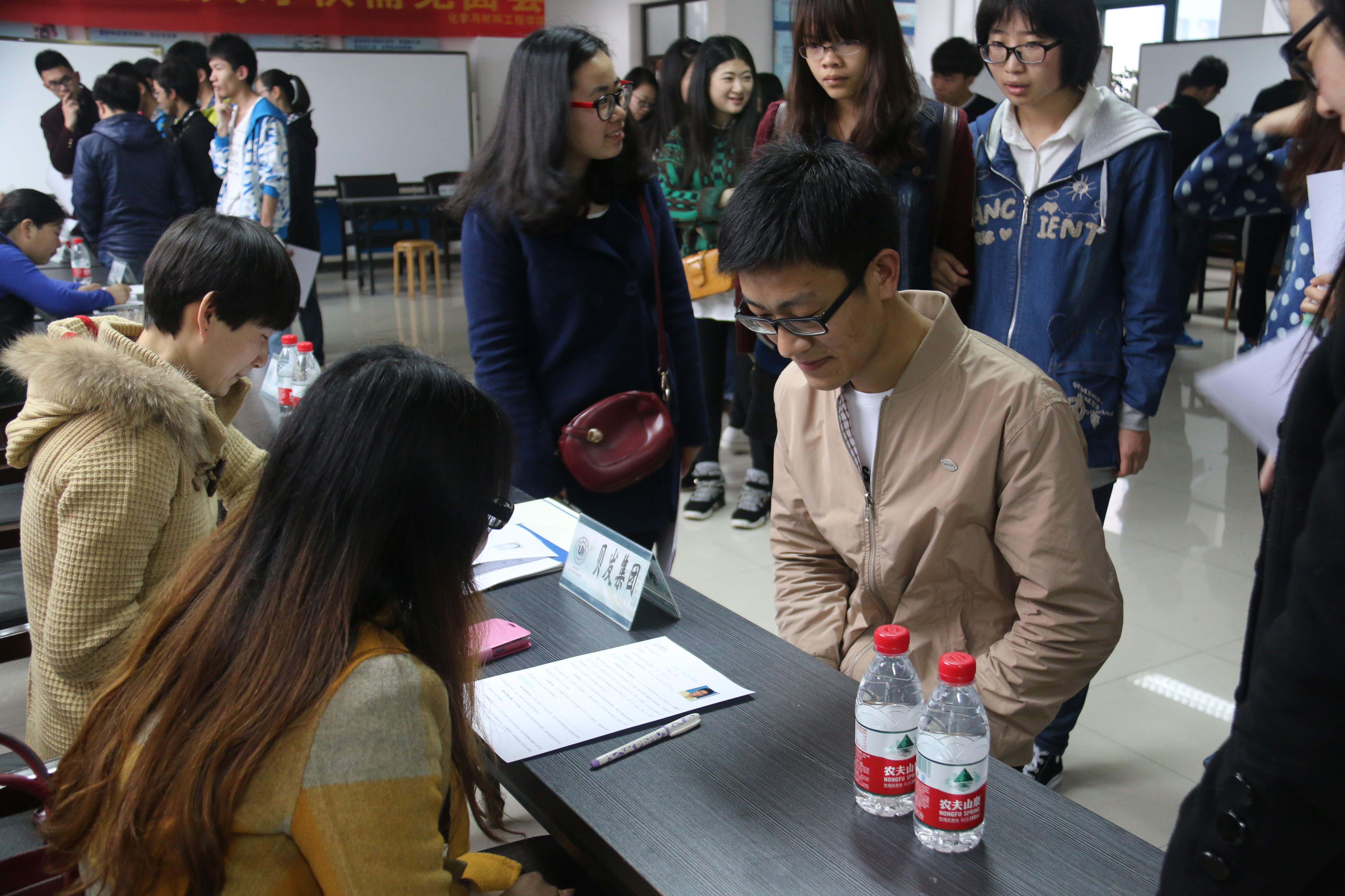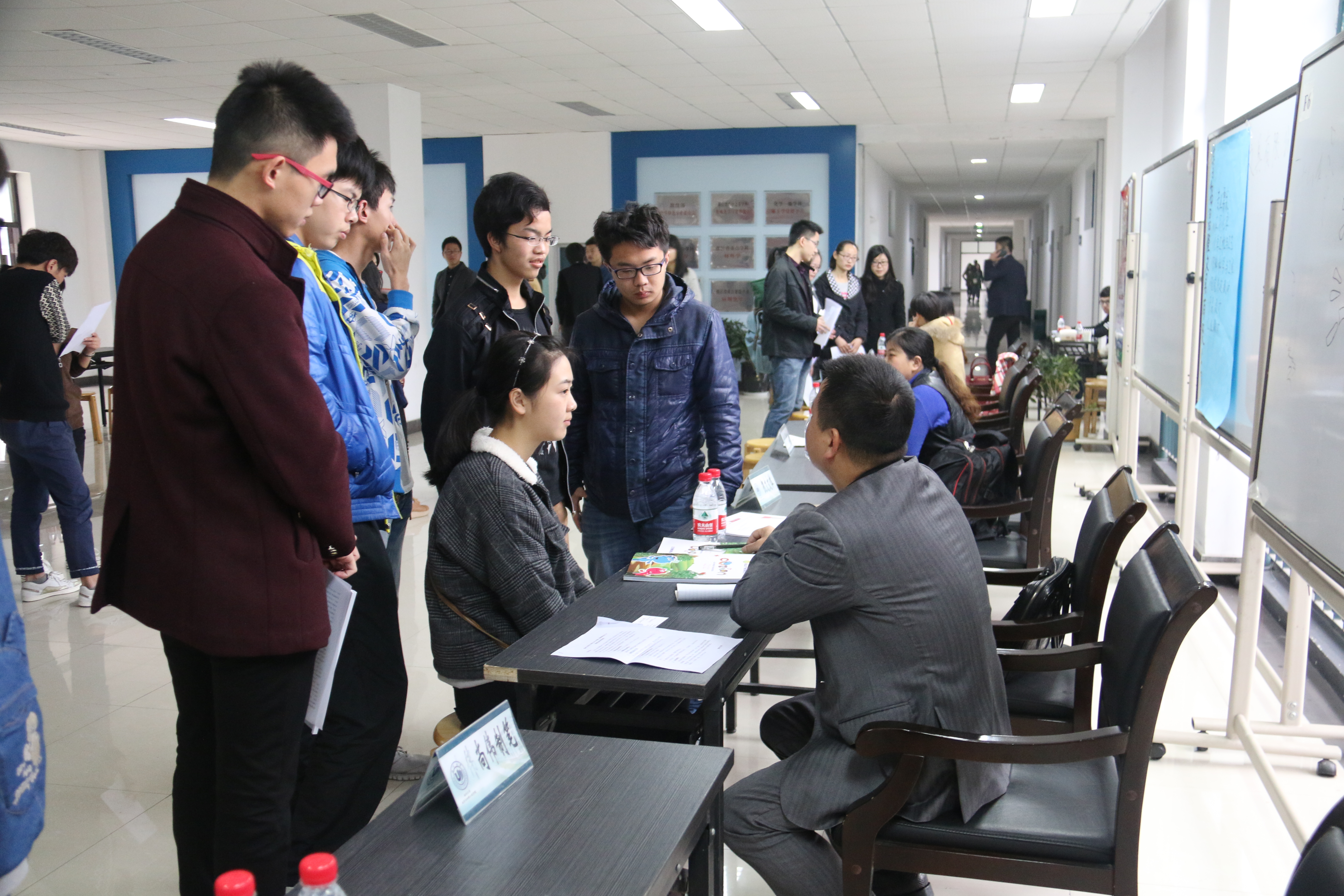 8:30左右,就有学生拿着简历陆续前来,几家招聘展位前围满了同学。与招聘方交谈过程中,同学们直观深入地了解到这12家制笔行业的工作岗位和招聘要求。