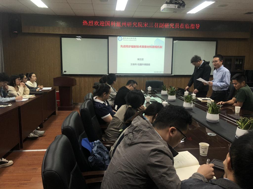 2022年10月11日,国科温州研究院宋三召副研究员受金辉乐副院长邀请来51吃瓜-51吃瓜官网