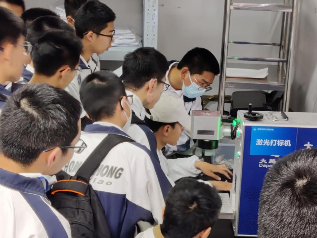 在材料智能制造实验室,志愿者介绍了3D打印和激光雕刻原理,现场为同学们定制了激光雕刻钥匙扣。同学们惊叹于材料智能制造的强大能力和神奇,并萌生了浓厚的兴趣。