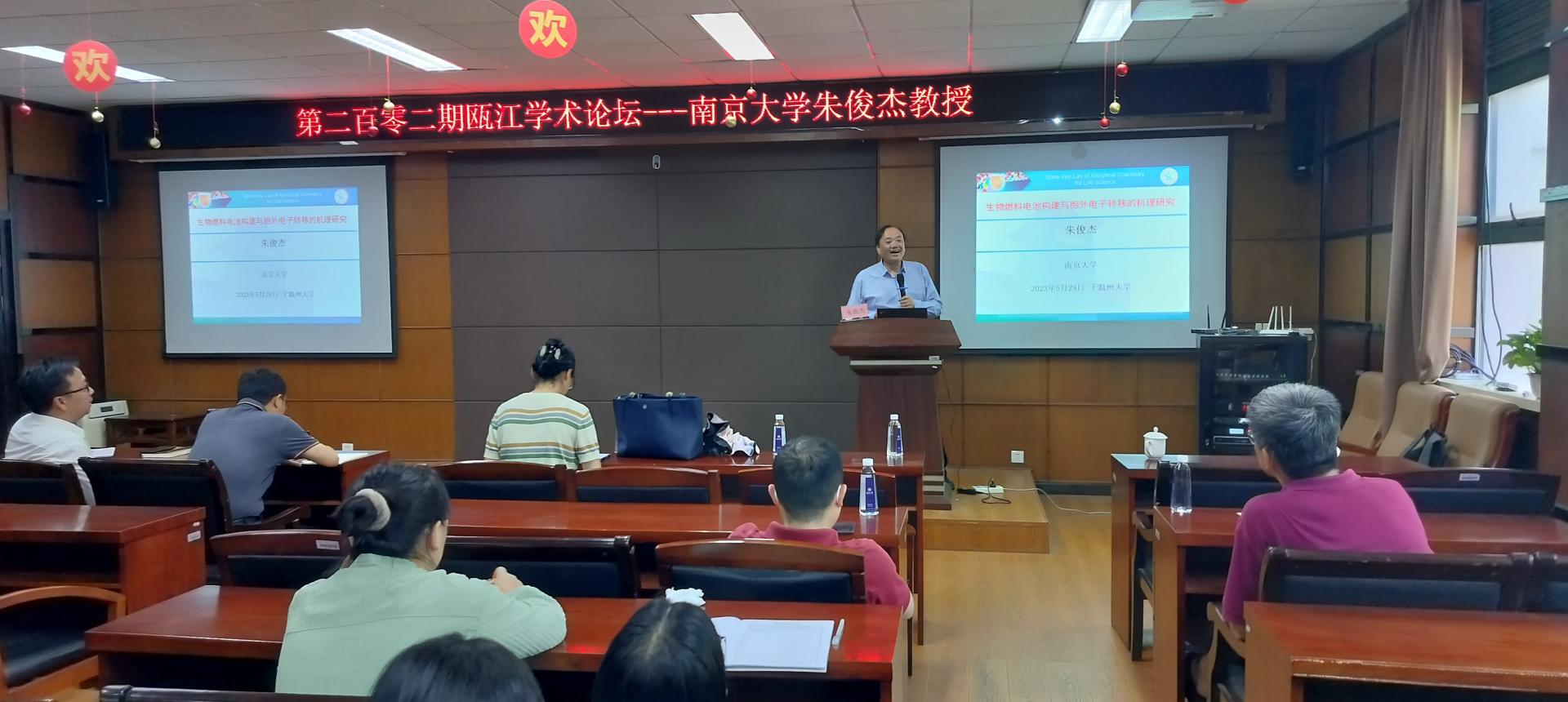 讲座中朱俊杰教授主要围绕了生物燃料电池研究方向进行学术报告,并分享了所在课题组在新型电极材料及电池结构、开发经济便携式医疗诊治工具和探索生物催化剂与能源体系结合3个方向的研究工作。