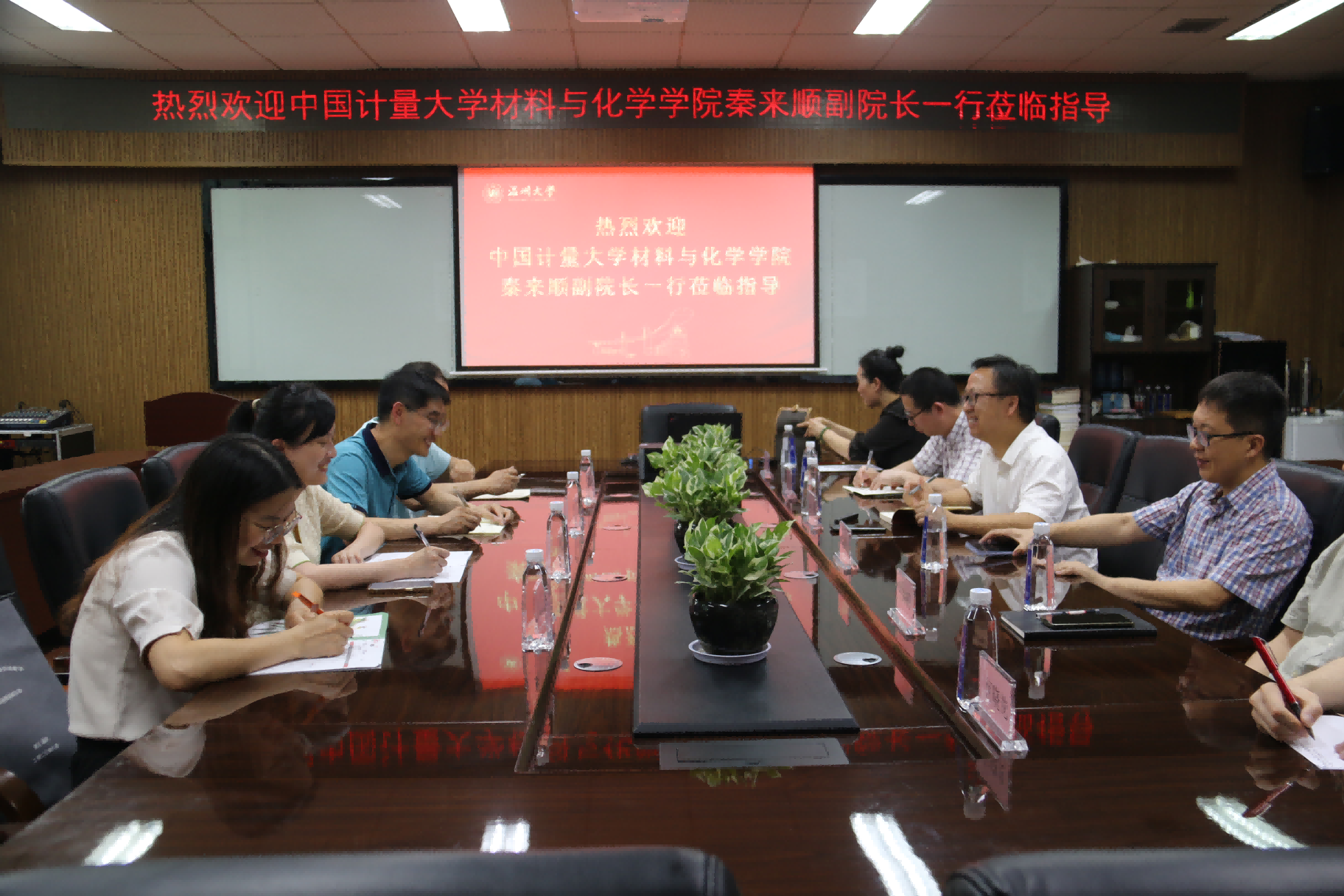 6月11日下午,中国计量大学材化学院副院长秦来顺、实验室管理主任徐扬、材料科学与工程专业负责人唐高、应用化学专业负责人郑小美等一行四人到访51吃瓜开展调研。学院院长杨植、材料系主任杨昕宇、化学系主任方国勇、应化系主任王兆伦、实验中心副主任陈素琴参加会议。