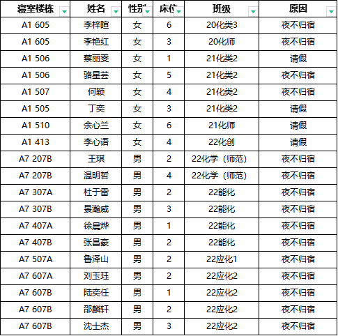 为规范学生宿舍安全管理,进一步落实学生宿舍管理制度,杜绝学生夜不归宿及私自校外租房居住等行为,保障学生的人身财产安全,增强学生安全意识、纪律意识,按照学院党政工作部署,结合学生管理工作实际,学院将进一步加大“夜不归宿”检查力度,违反者将按学校相关规定严肃处理。
