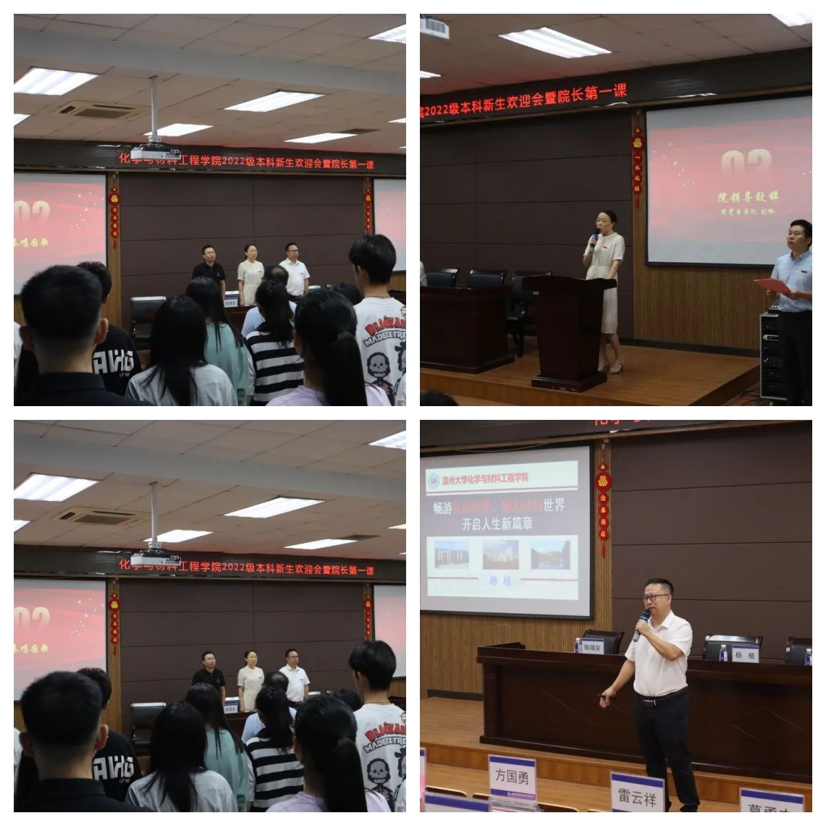。再从鸽子蛋到大马士革刀,从现象到本质,较为细致的给同学们展现了化学领域的大千世界,化材各个专业在全国乃至全世界的定位,希望同学们能够遨游于原子、分子的美丽世界,享受探索真理的诗与远方。最后,从学习环境、校园生活方面向同学们展开介绍,引导同学们尽快适应大学生活,并祝愿同学们抓住在温大的美好时光,谱写人生新篇章!